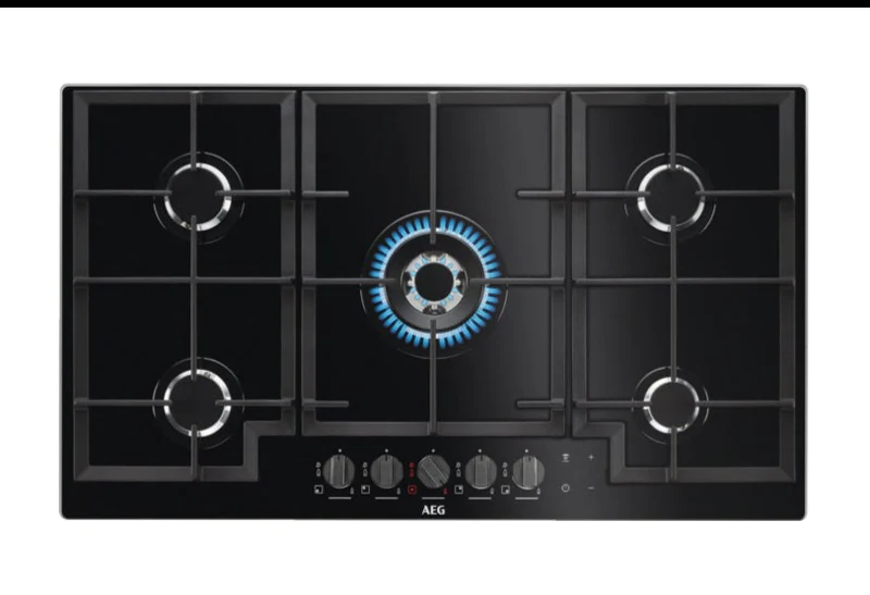 AEG 90Cm Gas On Glass Hob HKB95540NB, firstly, experience a harmonious blend of style and performance.