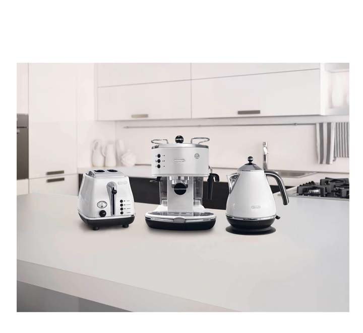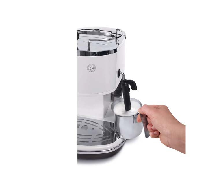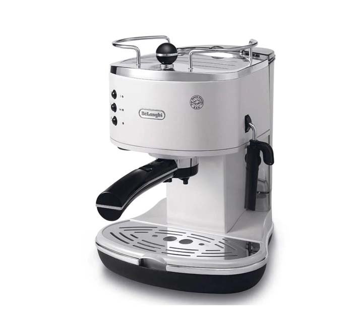 - The DeLonghi Icona Pump Espresso Machine features a vintage white design that adds elegance to your kitchen.