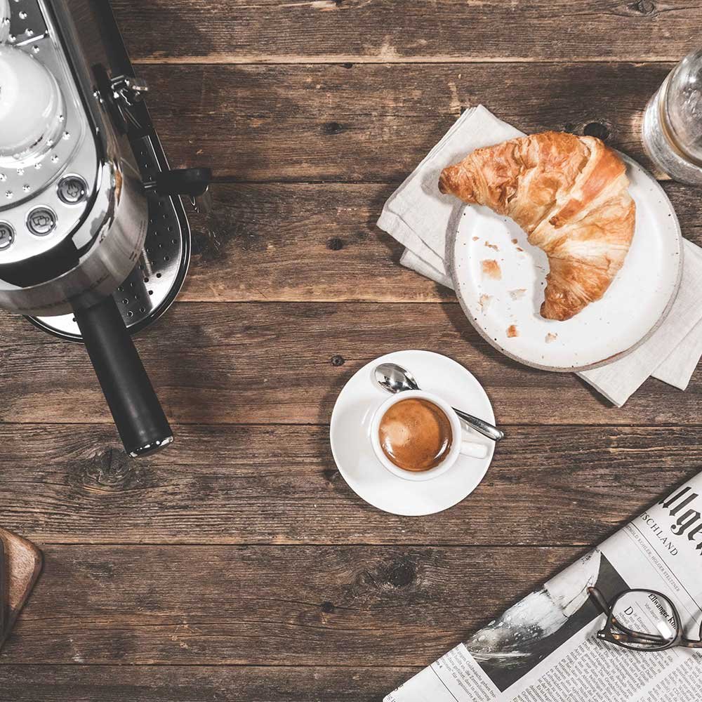 - Compact & Stylish Design: The DESIGN ESPRESSO PICCOLO Silver is very narrow, only 15 cm wide. It fits easily into any kitchen. The housing is made of brushed stainless steel with chrome-plated design elements, giving it a sleek and modern look.