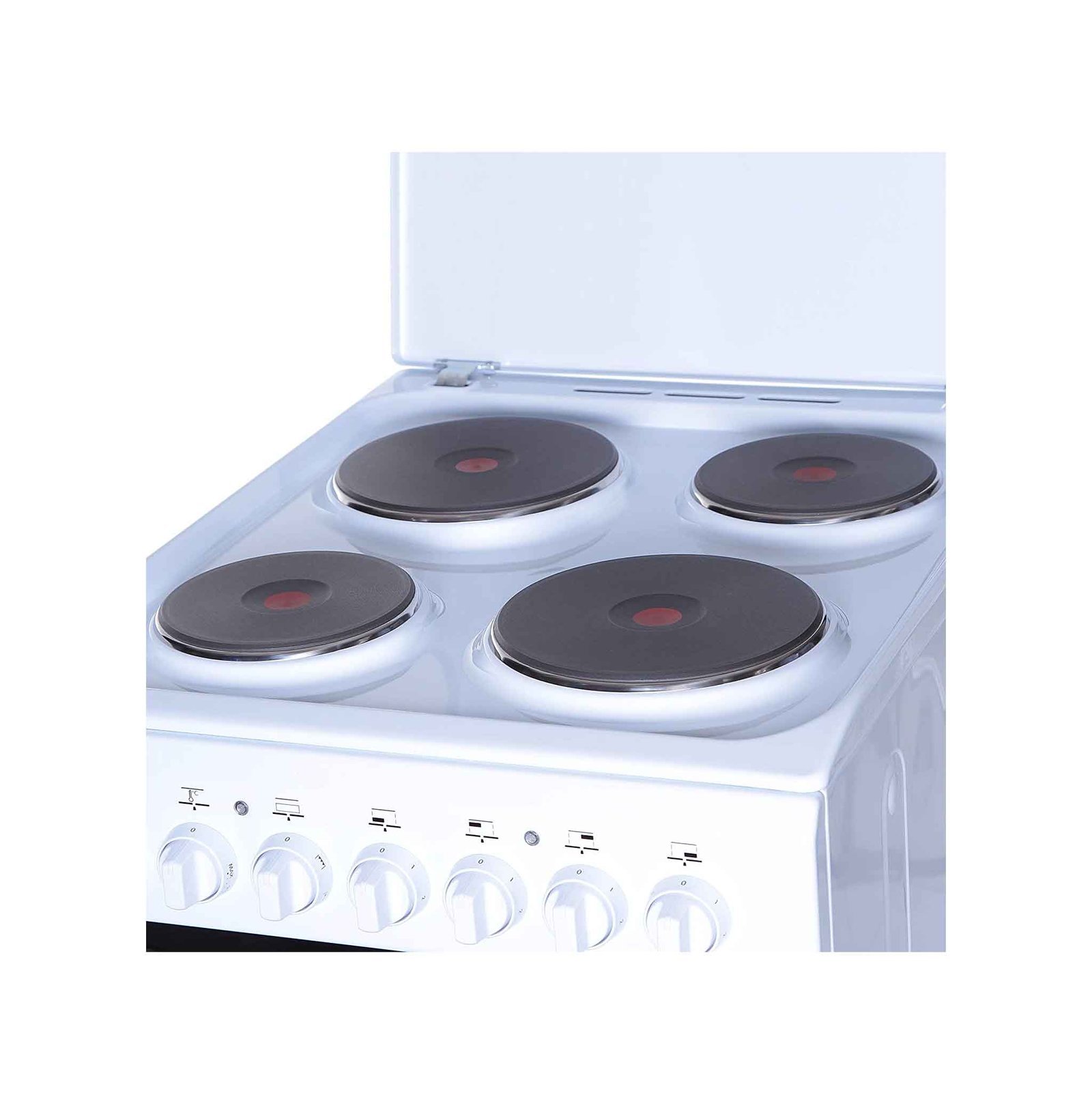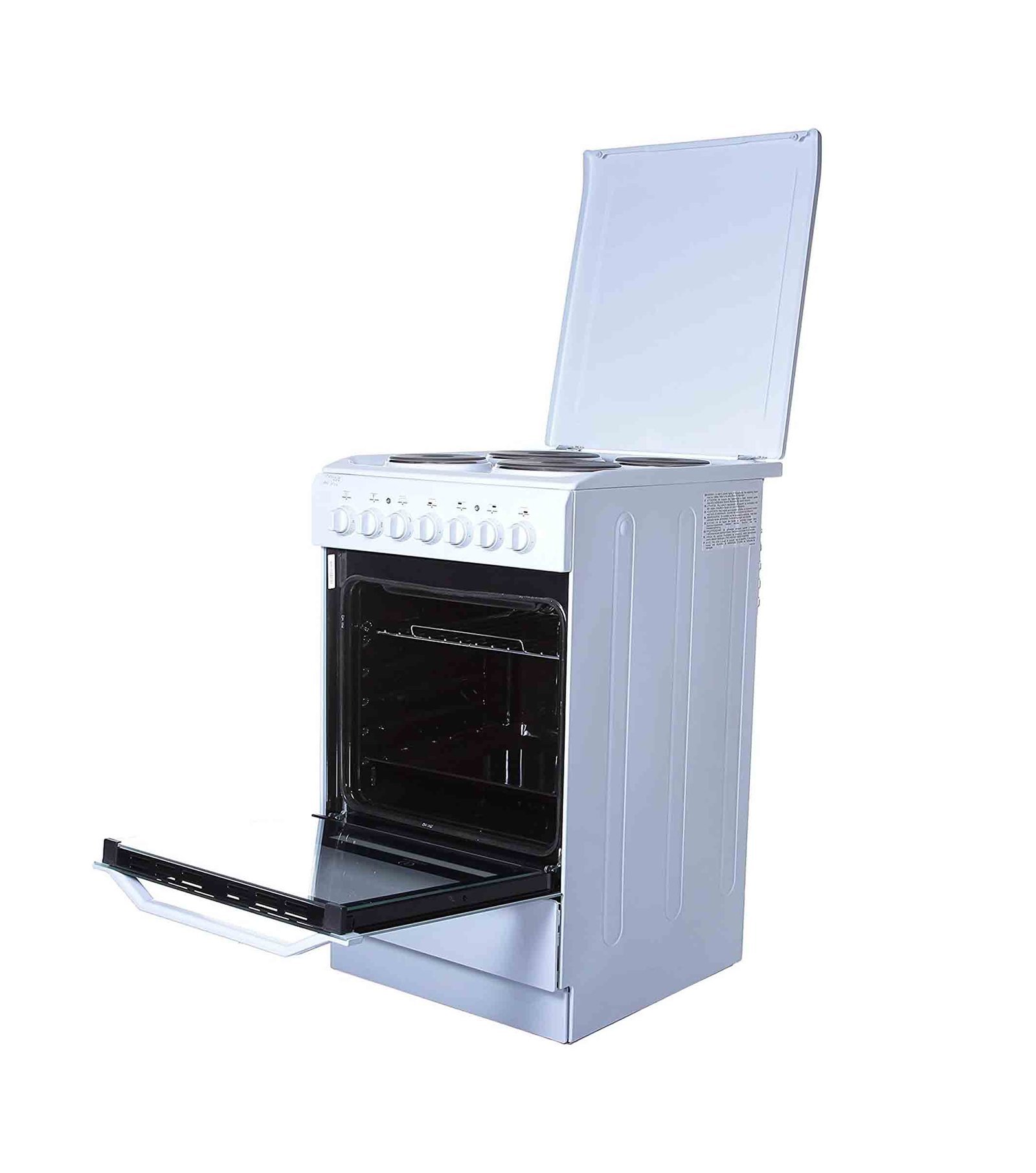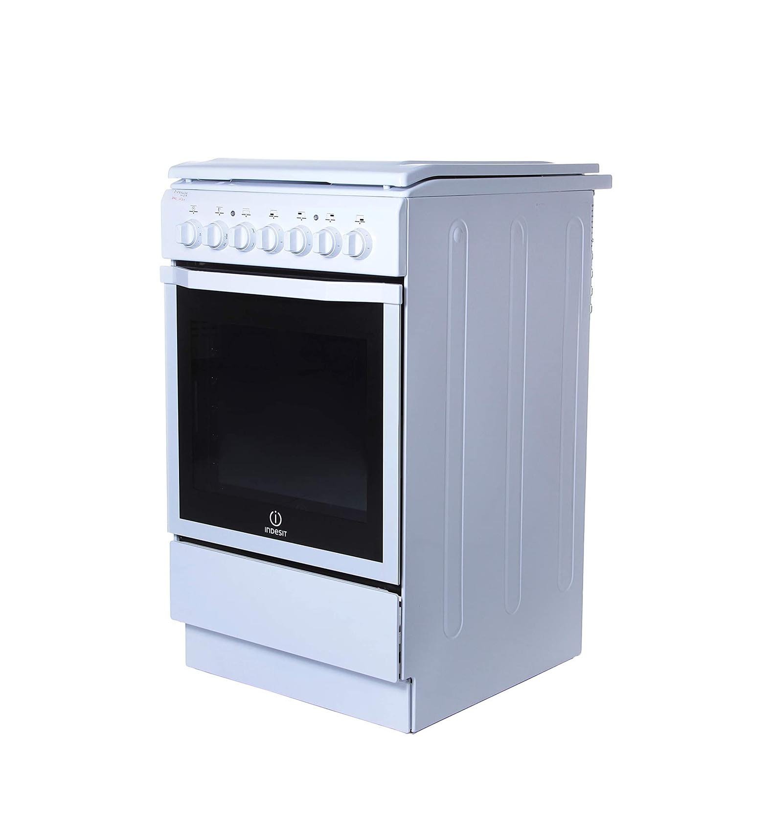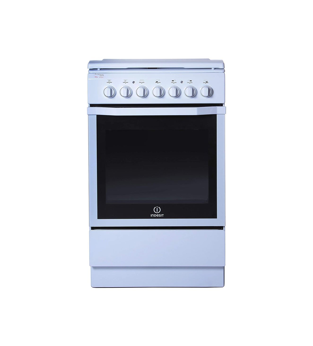 - Indesit 50X60 Cm Freestanding Cooker White Model I5ESH1EWEX , describe the cooker’s design, color (white), and overall aesthetics.