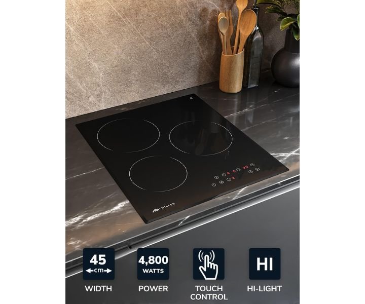 Upgrade your kitchen with the compact yet powerful MILLEN Built-in Electric Hob. With its 45 cm design, this sleek