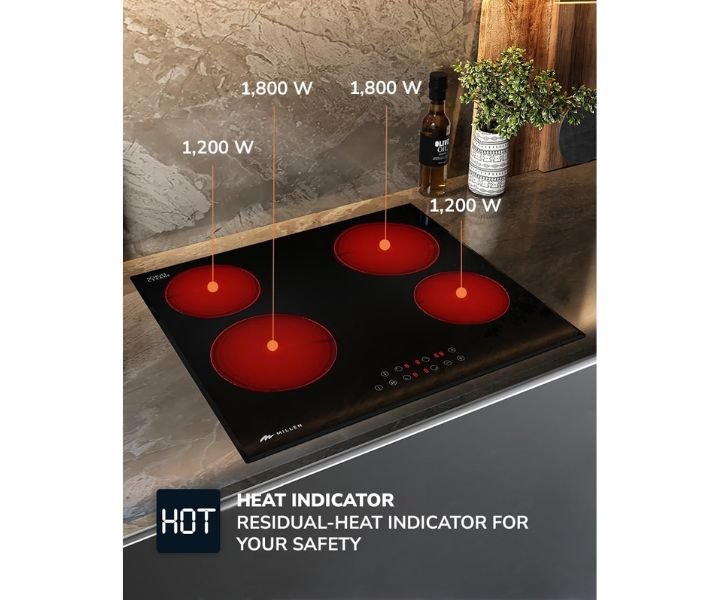 HEAT INDICATORMILLEN Built in Electric Hob Model-MEH 601 BL Residual-heat indicator for your safety |