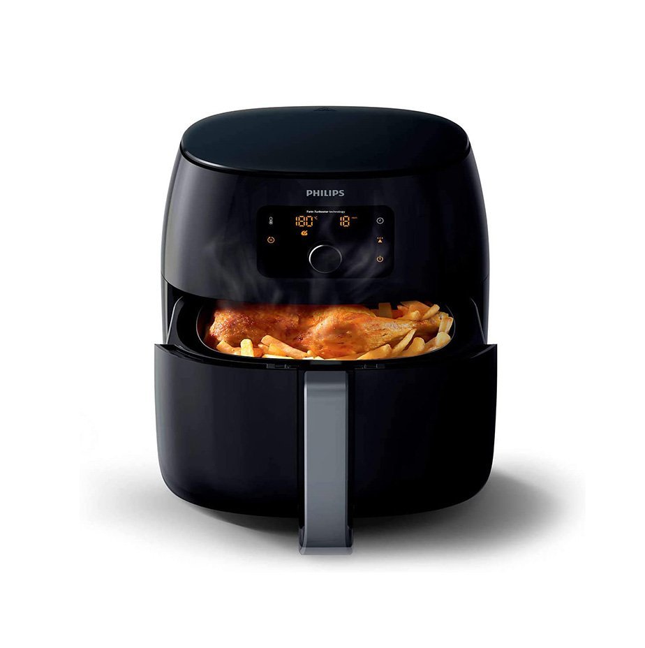 The Air fryer uses hot air to cook your favorite food with little or no added oil, so you can fry with up to 90% less fat***. Enjoy great-tasting, crispy results like deep fried, with the least amount of fat.