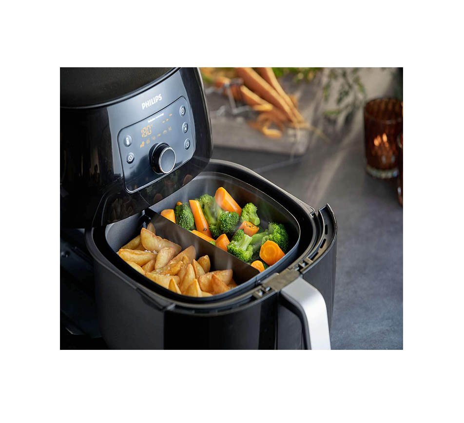 Philips’ Rapid Air technology creates 7x faster airflow for deliciously crispy results**. Enjoy healthier and tasty snacks and meals that are crisped to perfection yet tender on the inside.