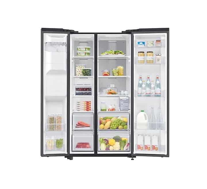 Samsung 640 Ltr Refrigerator RS64R5331B4 , Give your home a stylishly integrated and modern look. Its sleek and seamless counter-depth design will fit perfectly with the dimensions of your existing appliances and cabinetry to create a harmonious kitchen interior. It also has beautiful flat doors with recessed handles that don’t protrude.