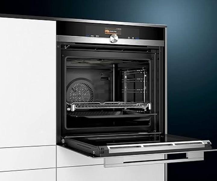Siemens Built in Electric Oven HB632GBS1M Equipped with varioSpeed, this oven reduces cooking time by up to 50%, ensuring your dishes are ready faster without compromising on taste or texture. The 4D hotAir technology ensures moreover even heat distribution for perfectly cooked meals, no matter which shelf you place your dish on. It also features an intuitive TFT display for easy navigation and control, making it user-friendly for both beginners and experienced cooks.
