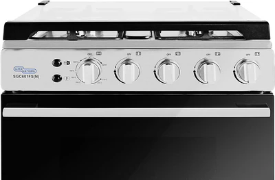 The Super General 60 x 60 cm Free Standing Gas Cooker Model SGC601FSN offers versatile cooking options. Its sleek silver design enhances any kitchen. Super General 4Burners Gas Cooker SGC601FSN.