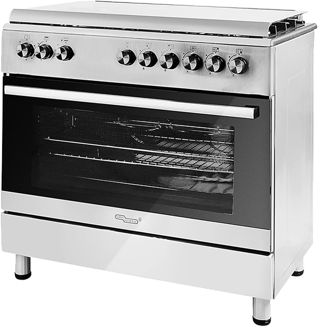 Tags: 5 Burner, 90x60x85 cm, Automatic Ignition, Double-Rotisserie, Freestanding, Full Safety, Gas Cooker, Gas Oven with Thermostat, Grey, Model SGC9603FSHG, Steel Cooker, Super General