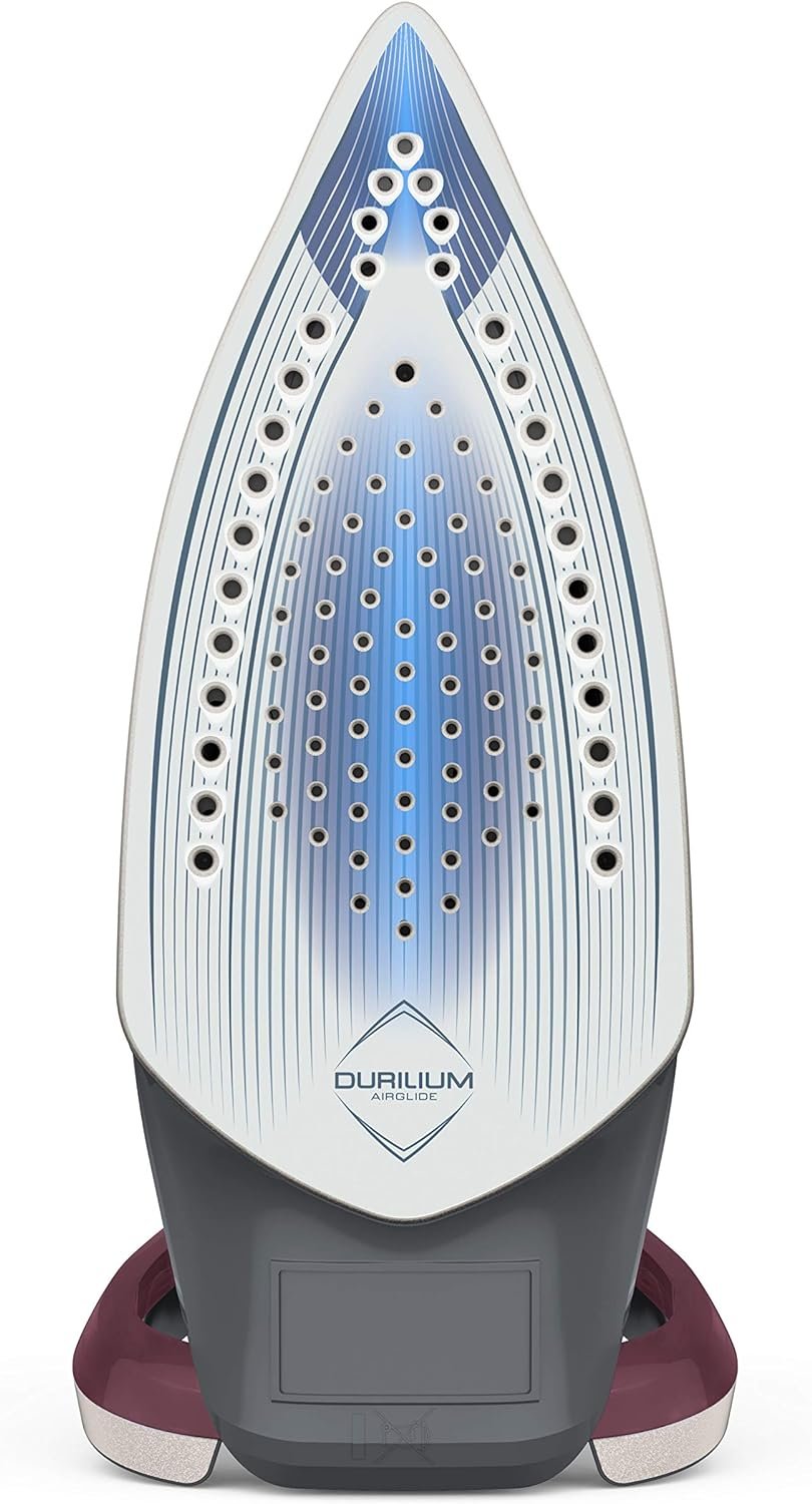 - The durable soleplate glides effortlessly over fabrics, reducing friction for smooth ironing.
