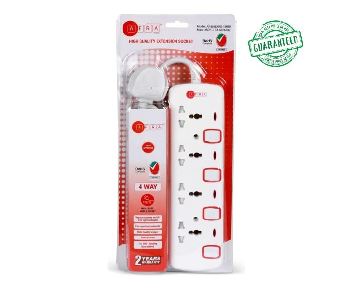 AFRA Japan Universal Extension AF-004EXRD-10MT , Firstly, experience enhanced connectivity and convenience with the AFRA Japan 4 Way Universal Extension Cord. This versatile accessory in a clean White design is engineered to power up your devices with ease.