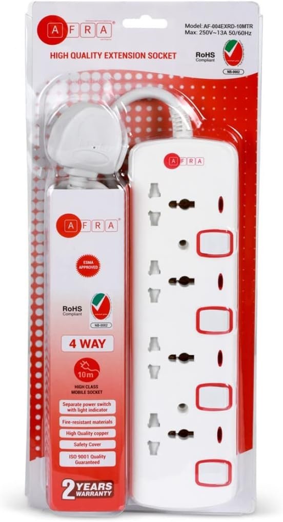 lastly, experience peace of mind with a 1 Year Full Warranty, ensuring that AFRA Japan stands by the quality and performance of their extension cord.