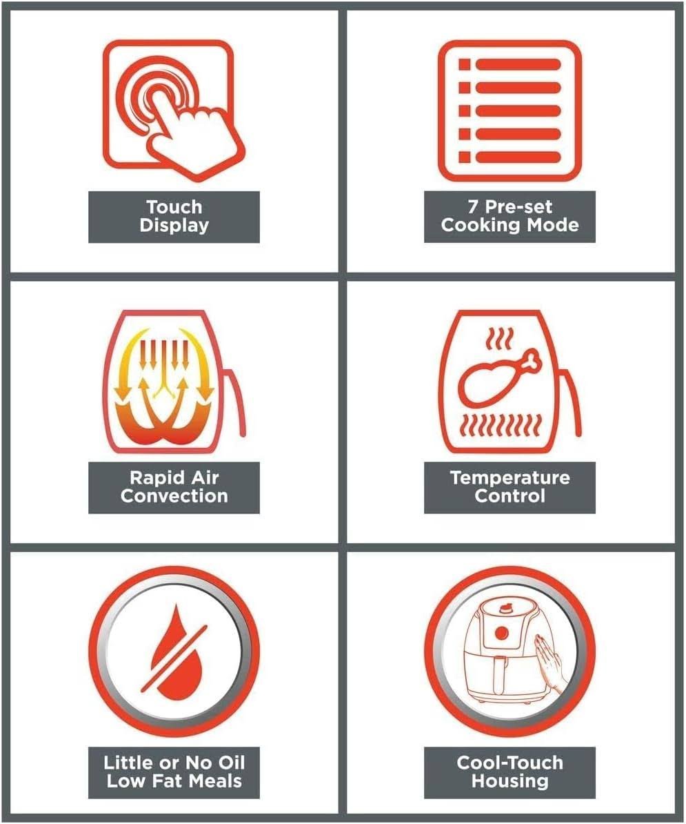 VERSATILE – 60 Minutes of adjustable timer for cooking versatility with 7 presets that allows you to cook with little or no oil for low-calorie, low-fat meals perfect to fry, bake, grill, and roast
