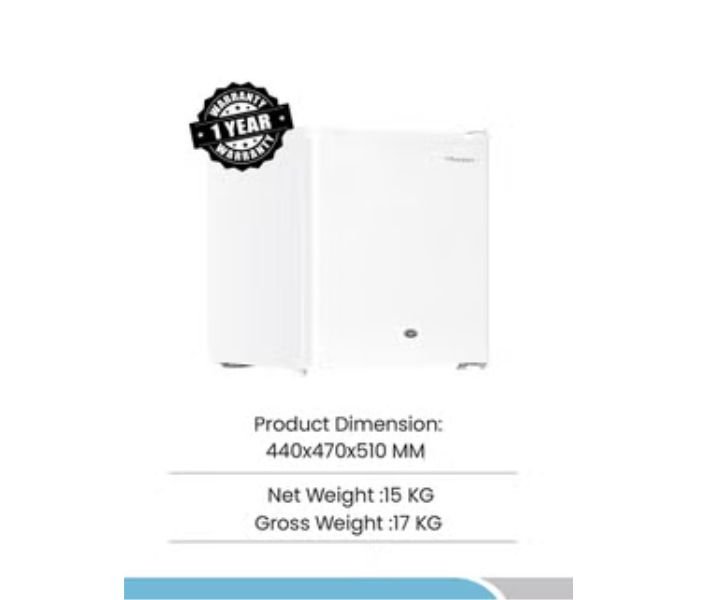 - Emphasis on its compact size and white color. Bompani 64 Liters Mini Refrigerator Single Door, White Model – BR64.