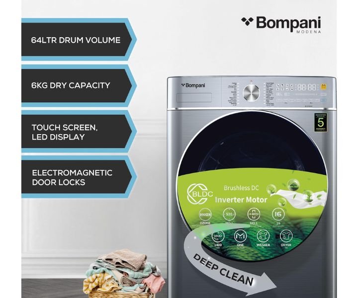 - Firstly, Bompani 10Kg Frond Load Washing Machine & 7Kg Dryer 1600 RPM Silver Model BI1070SS -1 Years Full Warranty. Bompani Free Standing Washer Cum Dryer 9/6Kg Wash&Drying, Stainless Steel Model – BI1070SSN.