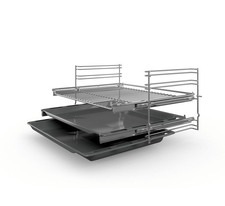 EcoClean Direct, the energy-saving cleaning aid, makes oven cleaning easy. A special coating of microfine ceramic spheres on the interior oven walls breaks down grease spatters while you bake or roast – for the entire service life of the appliance. Saving you time and energy. This function distributes heat quickly and evenly throughout the oven, making it possible to cook on up to three levels simultaneously. Sweet and savoury dishes can be cooked at the same time without mixing flavours. |