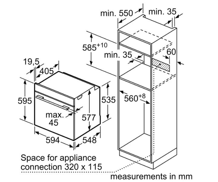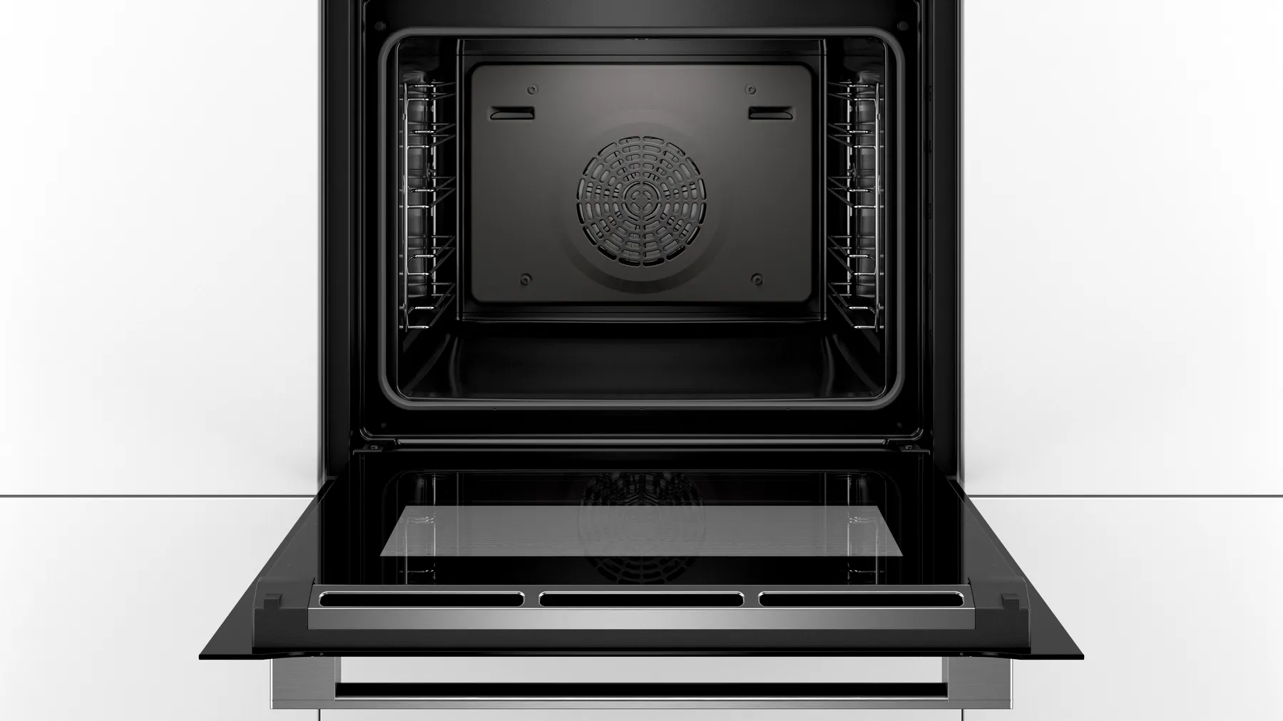 Bosch Series 8 | Built-in Oven 60 x 60 cm Black HBG635BB1M Our telescope system is safe and easy to use. It is much easier to place food on those levels that are equipped with telescopic rails. You no longer need to reach into a hot oven to check the cooking status.