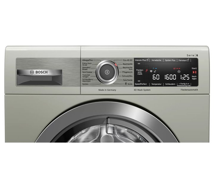 The Bosch Series 8 10 kg Washing Machine Front Loader in elegant Silver (Model WAX32MXOME is designed to take your laundry experience to a whole new level. With its generous capacity and backed by a 1-year brand warranty, it ensures your clothes are impeccably cleaned and cared for.