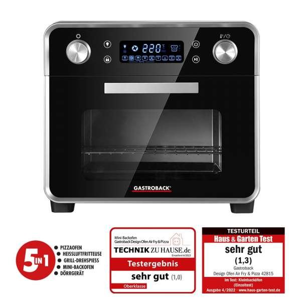 5 in 1: Pizza oven, hot air fryer, mini oven, rotating grill spit and dehydrator