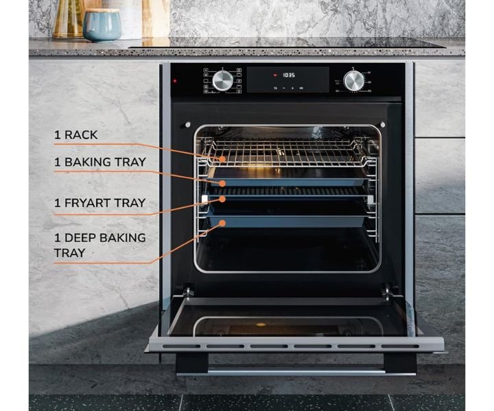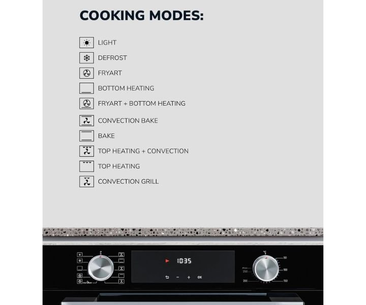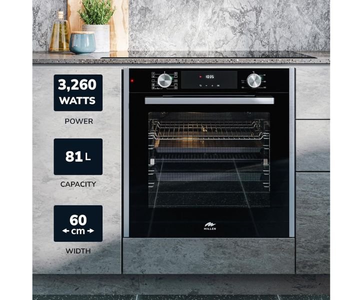 - Intuitive Controls: MILLEN 81 L Built In Electric Oven Model-MEO 6005 BL Effortless control through embedded mechanical switches for various modes, temperature adjustments, and time settings, ensuring easy operation and easy-to-clean surfaces .