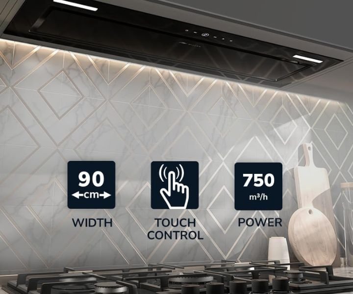 - Illuminated Elegance: The embedded hood features LED backlighting (2×2 W), not only enhancing visibility but also adding a touch of elegance to your cooking space.