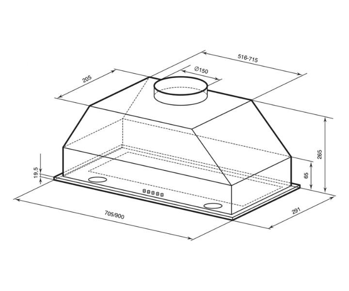 - High-Powered Ventilation: With a power consumption of 230 W, the hood ensures a robust ventilation system – Free exit 450–750 m3/h, Ventilation 400–665 m3/h, Air recirculation 320–530 m3/h.