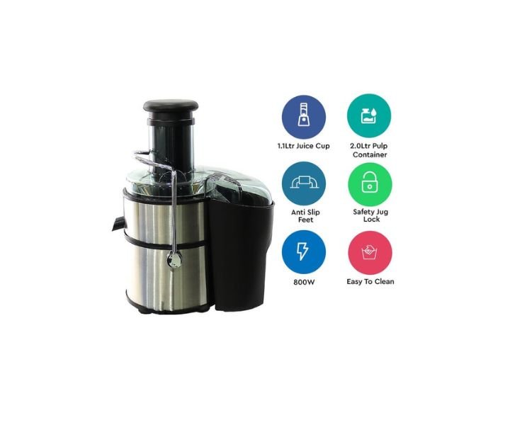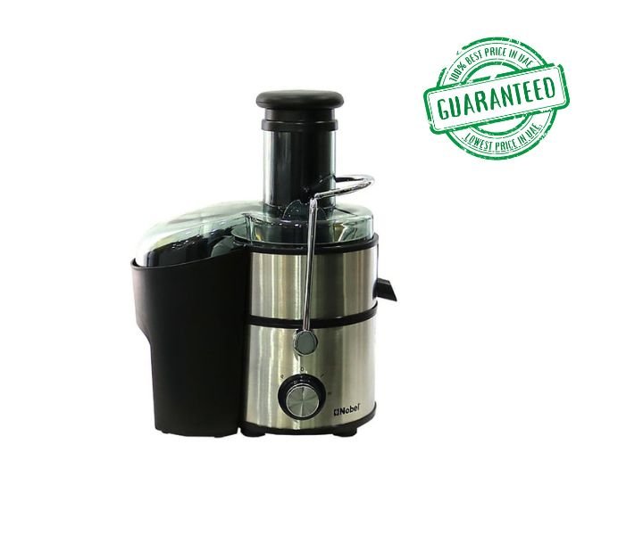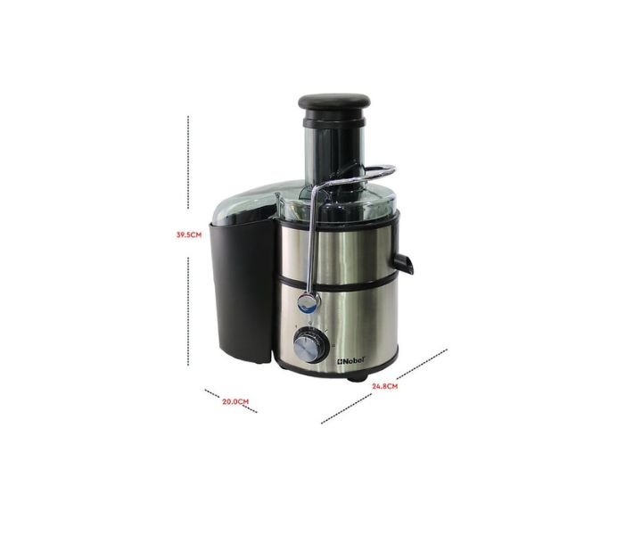 (The Juicer) With 2.0Litres Pulp Container and 1.1Litres Juice Cup. The Juicer NJE404E from Nobel, have 75mm Feeding Tube. Which helps you to feed the fruits easily. And its pulp container allow you to not to worry about the pulp as it can hold up to 2 Litress of pulp. (Stainless Steel Filter) It has Stainless Steel Filter which allow you to strain the pulp effectively, and its durable as well. (My Performance & Value Delivered Because we value our consumers, we put a lot of emphasis on durability, efficiency, and Quality. Having 800W capacity, its helps you to extract the juice smoothly. It has an Overheat Protector, which helps to protect the unit from overheating. (My Specifications) Colour: Stainless Steel, 75mm Feeding Tube Switch with Blue LED Light 2.0Litres Pulp Container 1.1Litres Juice Cup Stainless Steel Extra Filter Basket Stainless Steel Juice Outlet Overheat Protection Safety Lock 220-240/50-60Hz 800W BS Plug.