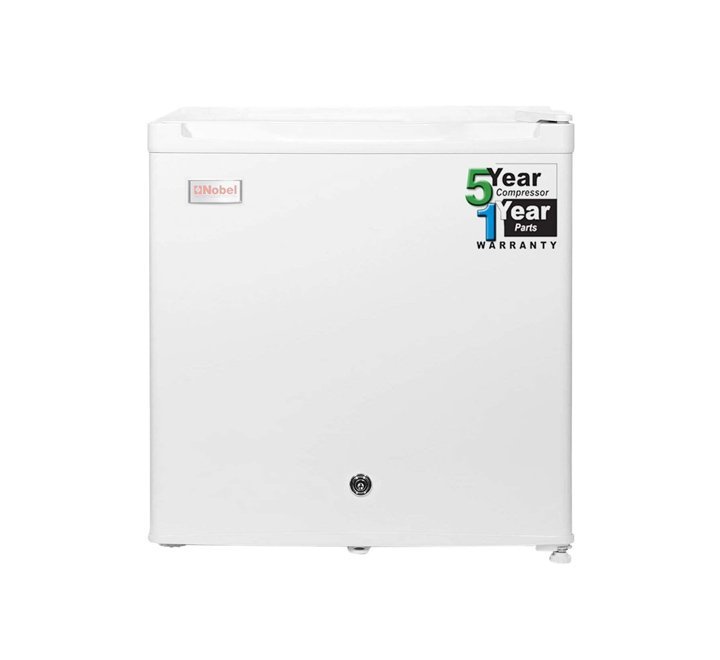 Nobel 66 Liters Single Door Defrost. In a sleek White Color, Model-NR66N. Offers ample storage space for all your frozen goods. With its generous 66 liters capacity. You can stock up on groceries and store them with ease.