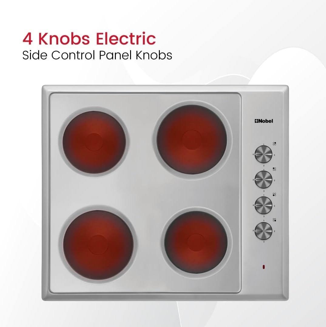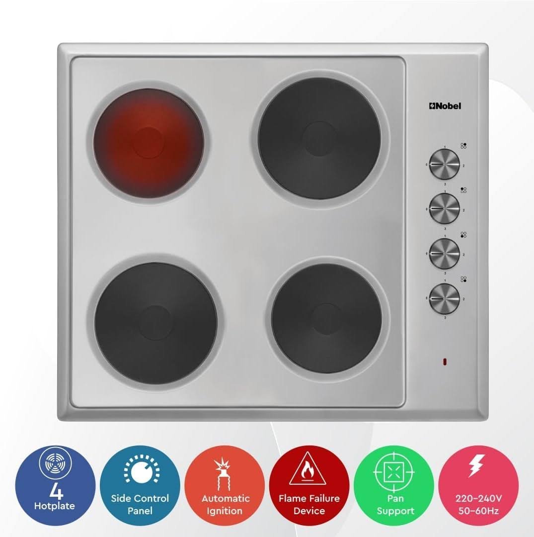 Nobel Electric Build In Hobs With 4 Hot Plate Stainless Steel Top Plate Size 60 x 60 cm Color Silver Model – NBH6040SSH – 1 Year Brand Warranty.