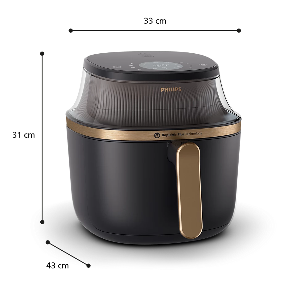 Enjoy delicious food with up to 90% less fat*. Patented RapidAir Plus Technology with unique star-shaped design circulates hot air around and through the food with faster airflow**, ensuring even cooking inside and outside to create tasty homemade meals.