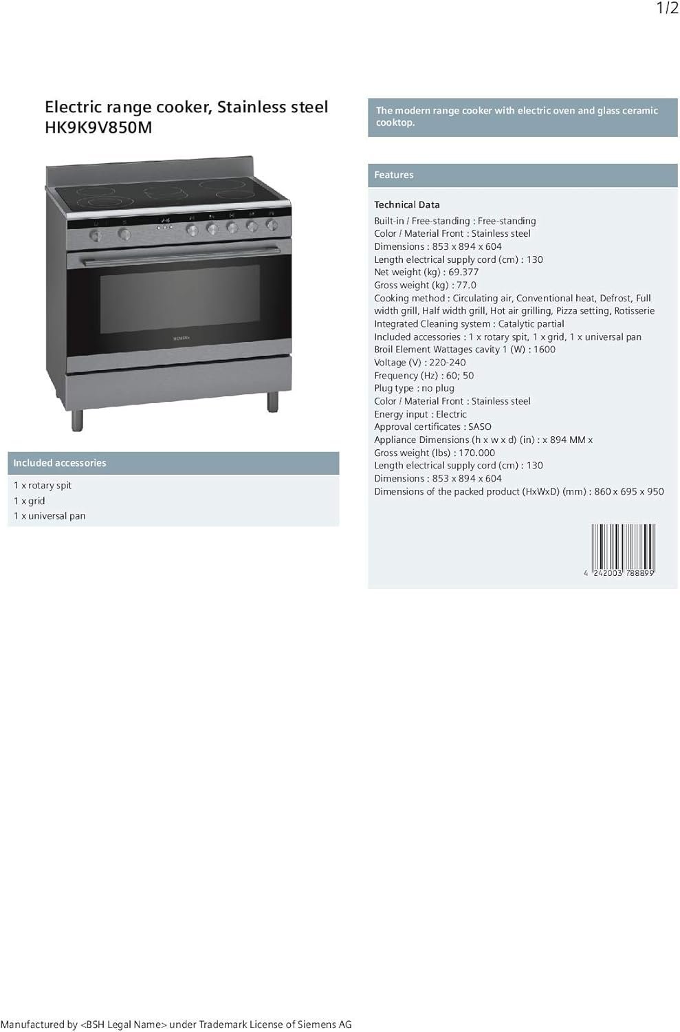 - Siemens integrates German precision and innovation into this 90 cm freestanding cooker.