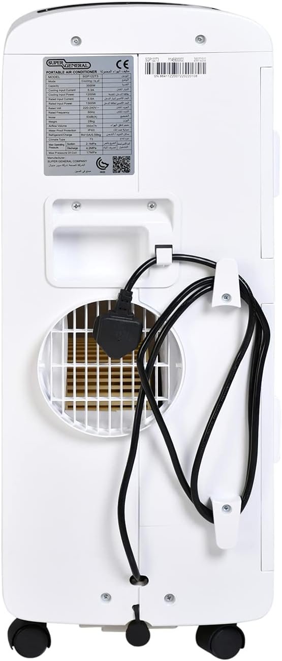 Tags: 1 Ton, 1 Year Full 5 Year Compressor Warranty., 100% Copper Pipes, 12000 BTU, 24H Timer, Air Conditioner, Color White, Low Noise, Model - SGP122T, Portable, Powerful Cooling, Super General